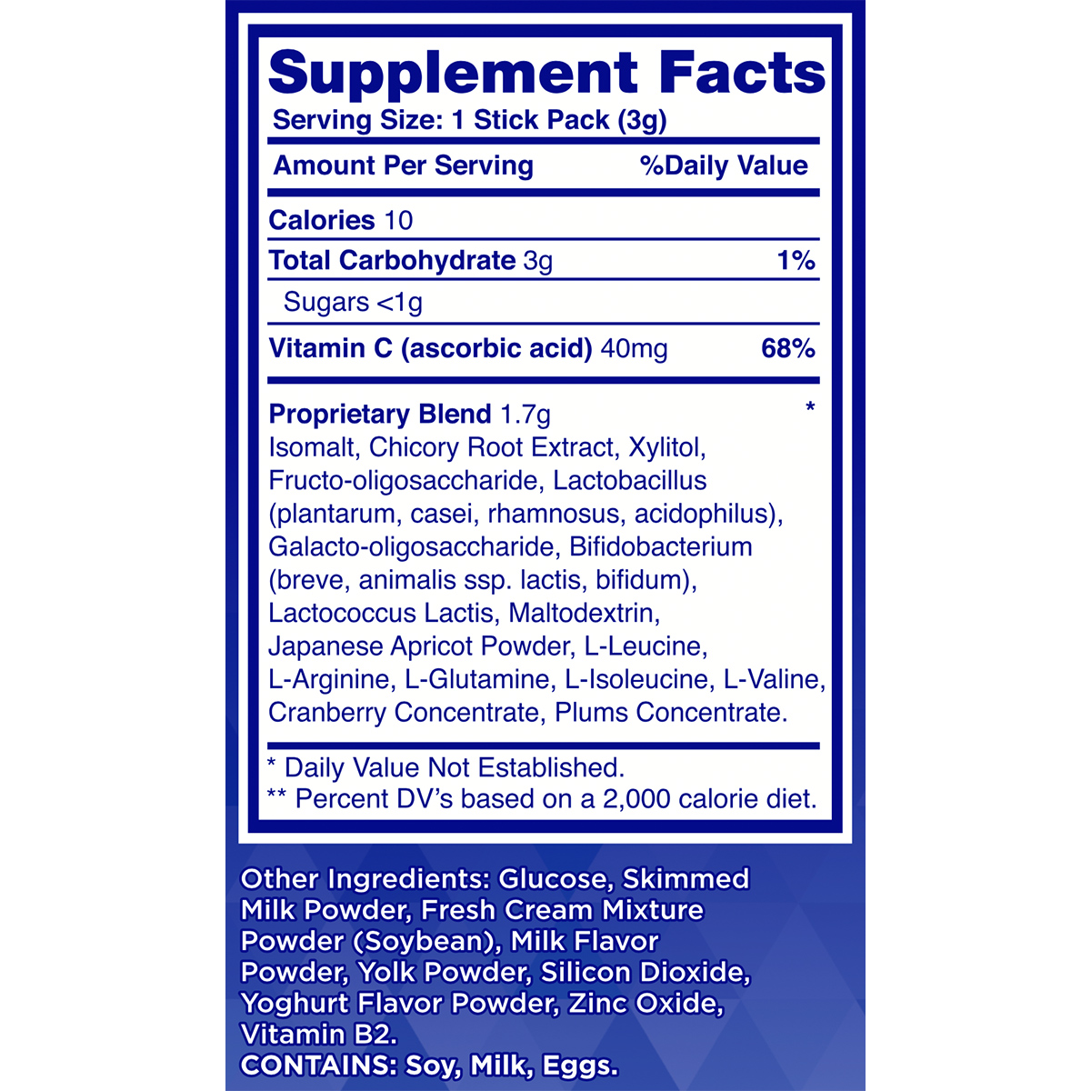 Ingredients: Lactobacillus acidophilus, etc. Consume one stick daily. Korean patents for efficacy. Reviews: “No more bloating!”